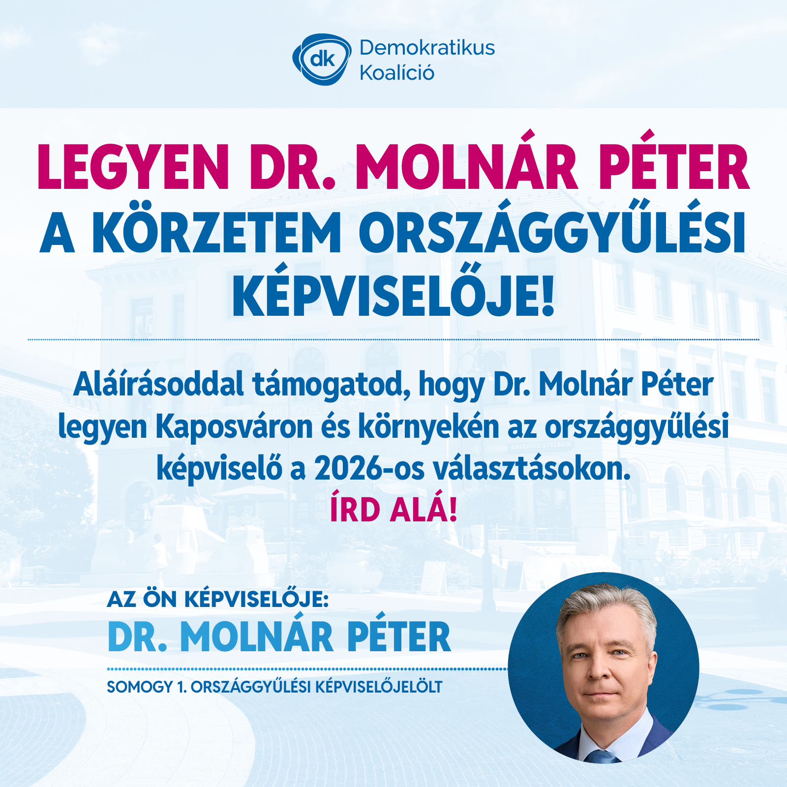 Aláírásoddal támogatod, hogy Dr. Molnár Péter legyen választókörzeted országgyűlési képviselője a 2026-os választásokon! ÍRD ALÁ!