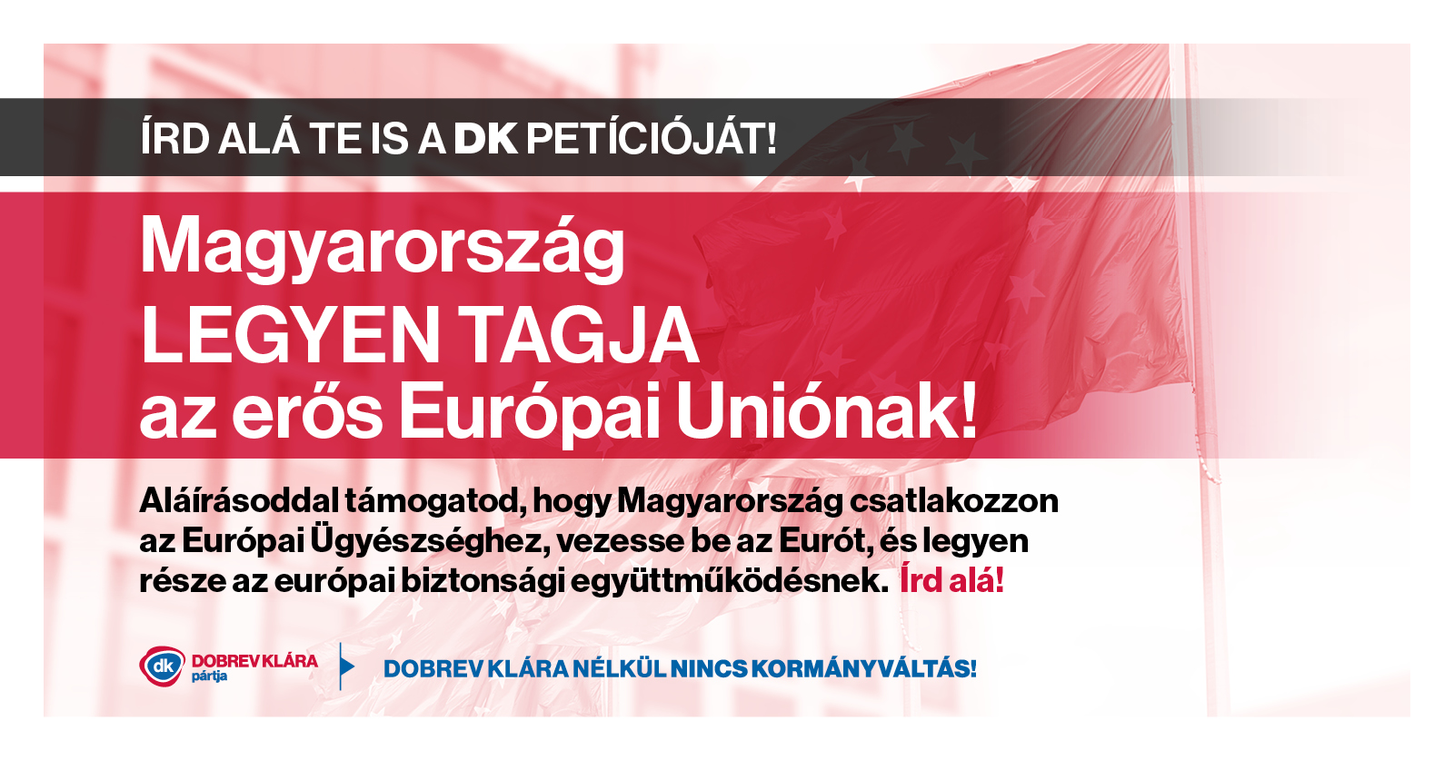 Éppen ezért a DK aláírásgyűjtést indít hazánk EU- és NATO-tagsága mellett. Meg akarjuk mutatni az európai szövetségeseinknek, hogy Magyarország nem egyenlő Orbán Viktorral, itt egy európai nép él a fideszes propaganda plakáterdejében. A legeurópaibb pártként azt akarjuk elérni, hogy minden, az Orbán-rendszerrel szemben álló ember egyértelművé tegye, hogy mi, magyarok az EU és a NATO tagjai akarunk lenni.