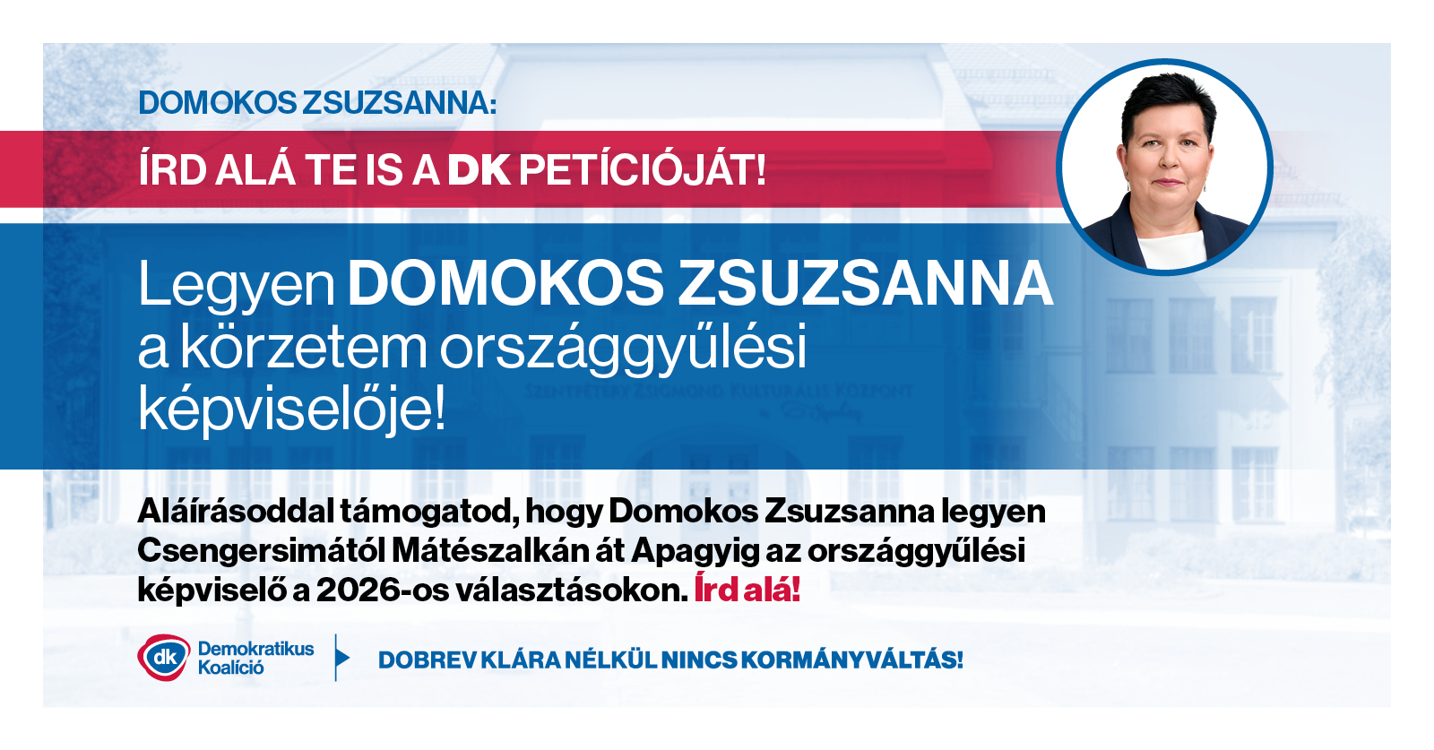 Aláírásoddal támogatod, hogy Domokos Zsuzsanna legyen választókörzeted országgyűlési képviselője a 2026-os választásokon! ÍRD ALÁ!