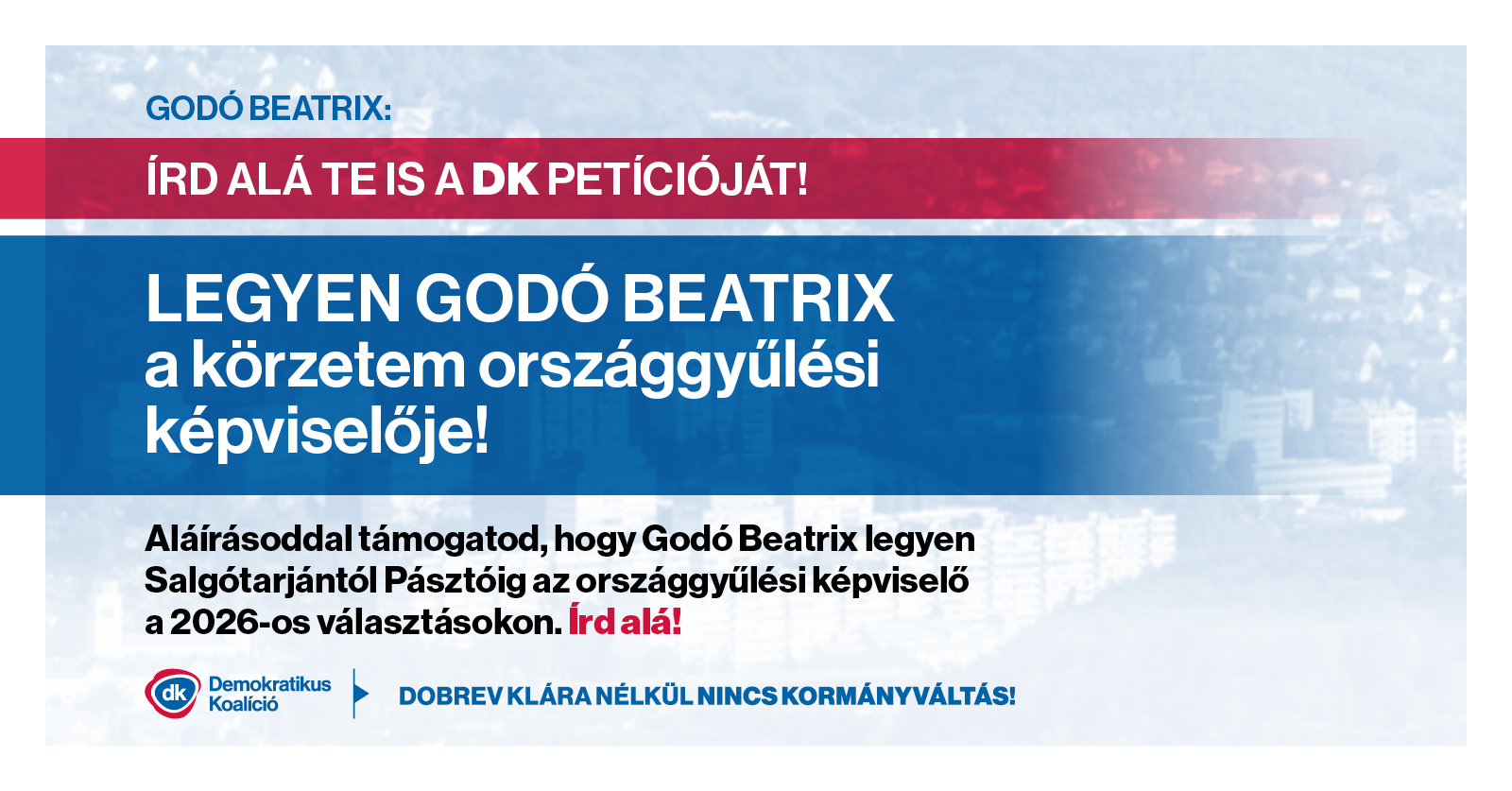 Aláírásoddal támogatod, hogy Godó Beatrix legyen választókörzeted országgyűlési képviselője a 2026-os választásokon! ÍRD ALÁ!