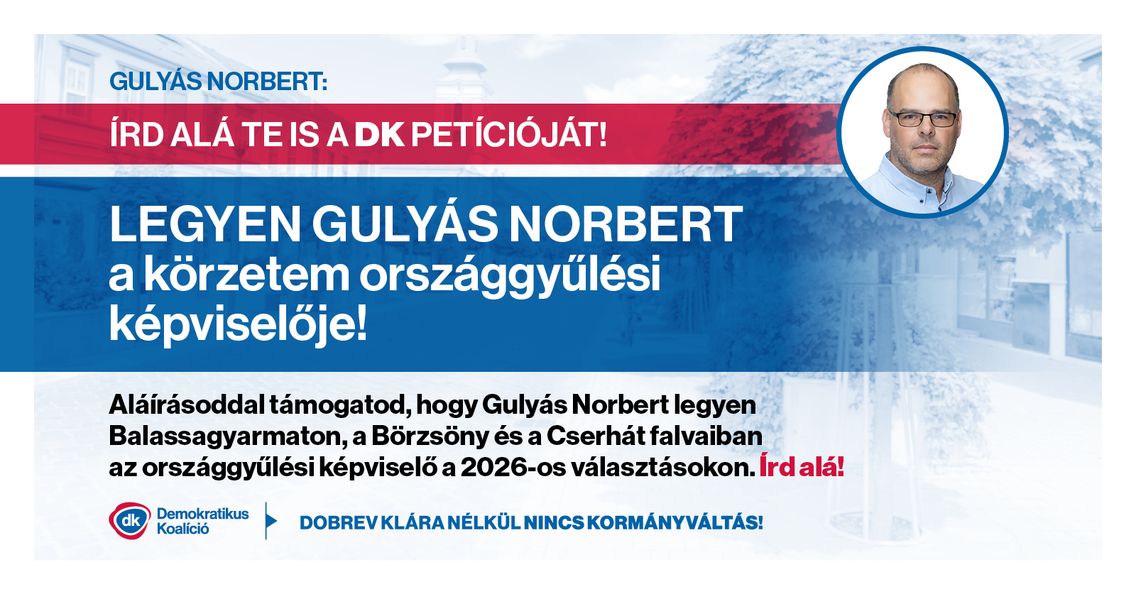 Aláírásoddal támogatod, hogy Gulyás Norbert legyen választókörzeted országgyűlési képviselője a 2026-os választásokon! ÍRD ALÁ!