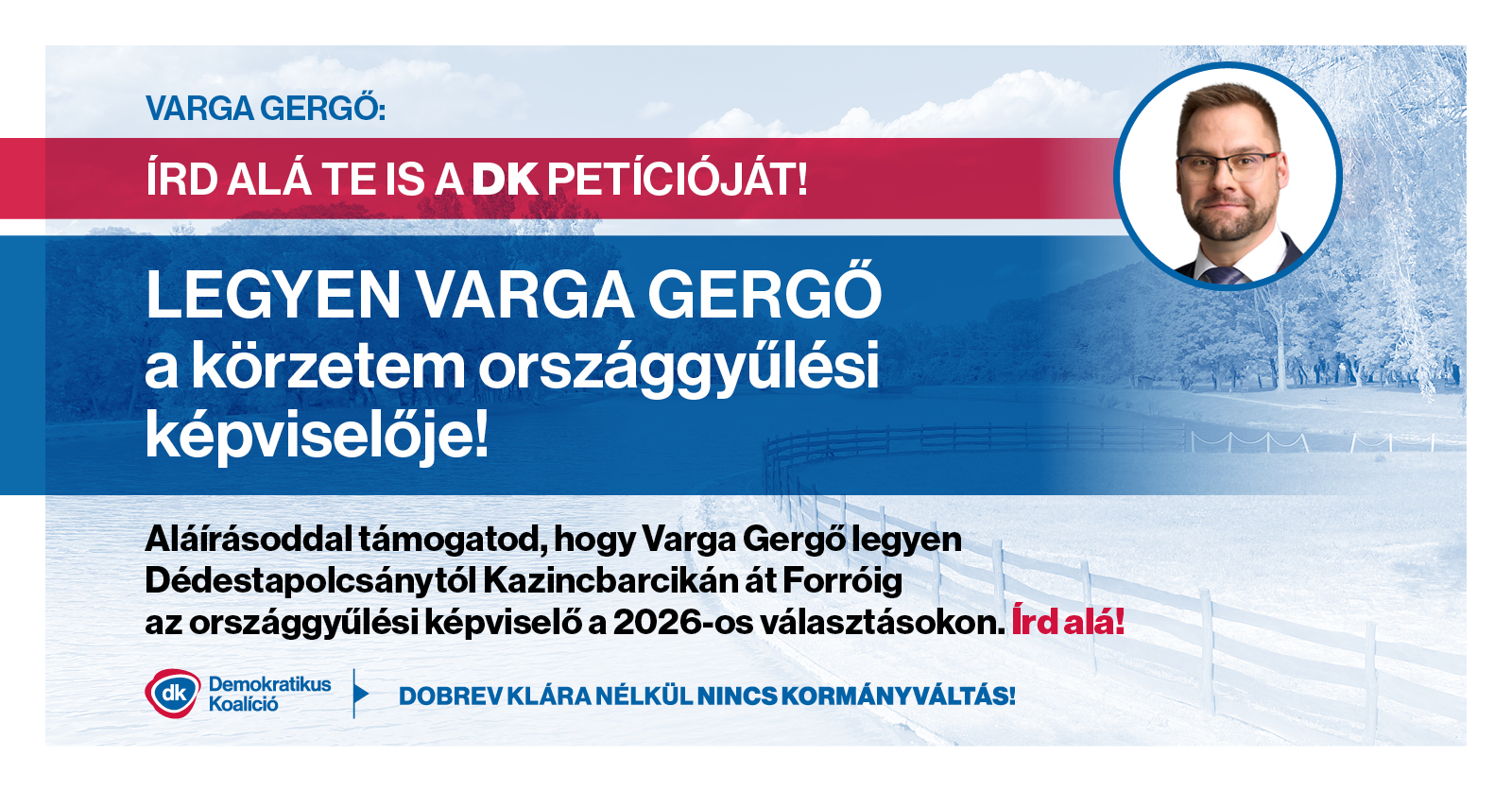 Aláírásoddal támogatod, hogy Varga Gergő legyen választókörzeted országgyűlési képviselője a 2026-os választásokon! ÍRD ALÁ!